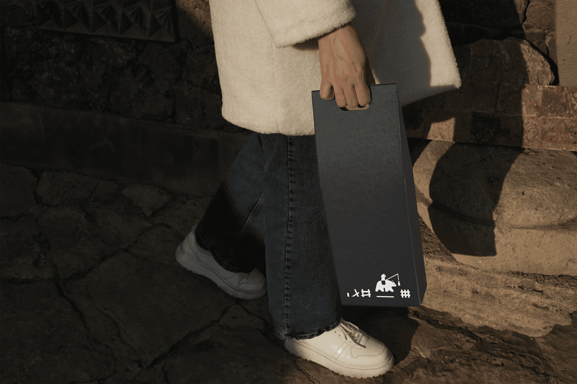 Verpackung, Flasche und Illustration fügen sich zu einem Gesamtbild, das gleichermaßen modern wie traditionsbewusst wirkt. Die puristische Gestaltung bringt die Tiefe des Produkts zur Geltung, ohne sich aufzudrängen.