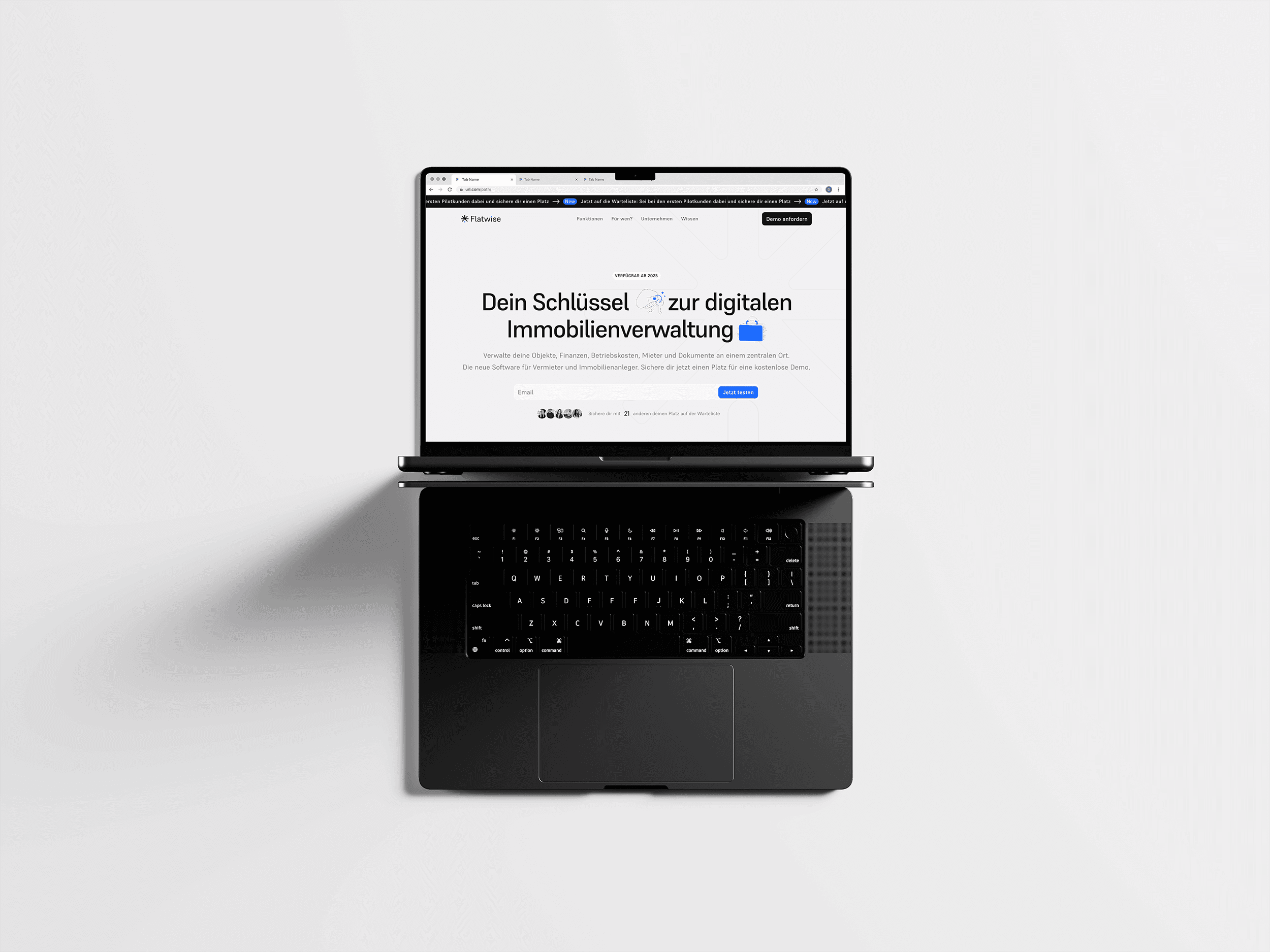 In einem iterativen Prozess entstand ein Branding, das den Spagat zwischen Seriosität und Innovationsfreude meistert. Die Marke sollte klar, reduziert und vertrauenswürdig wirken – aber auch neugierig machen. Der Markenname Flatwise spielt bewusst mit Assoziationen rund um Wohnen, Klarheit und digitale Intelligenz.